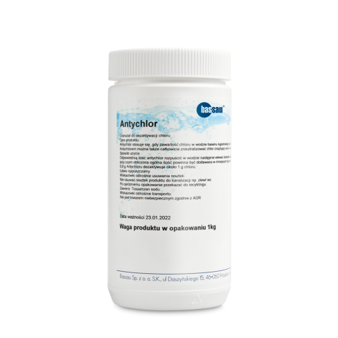 Produkt zmniejszający stężenie chloru wolnego. Czasami może się tak zdarzyć, że przesadzimy z chlorem. Antychlor pomoże nam szybko wrócić do dozwolonej ilości chloru w naszym basenie.
