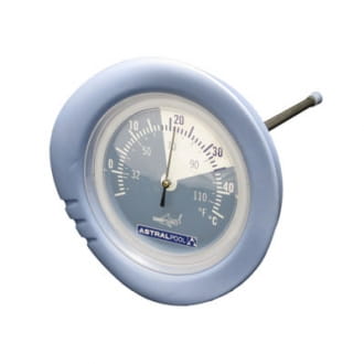 Pływający termometr basenowy, bardzo solidy, renomowanej firmy Astral Serii SHARK. Termometr ma metalowy pręt, który dzięki zanurzeniu w wodzie na około 20 cm pozwala dokonać bardziej dokładny pomiar.