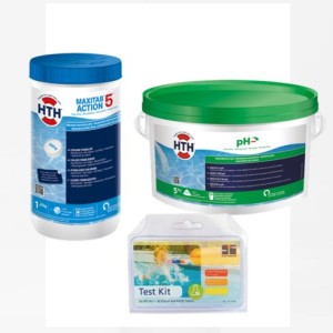 Zestaw startowy zawiera produkty służące do uzdatniania wody w basenie w średnim i dużym basenie. Podstawowe środki do dezynfekcji wody w basenie.